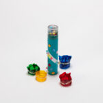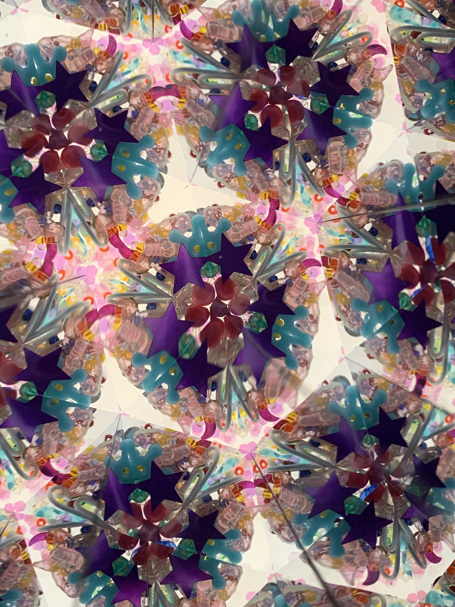 オブジェクトケースには、輝く星のオブジェクトやクリップ等沢山のオブジェクトが入っています。突き出た部分のある多角形のオブジェクトがお花をイメージさせます。緑の小型のチューブは、どこか草木の茎を連想させます。