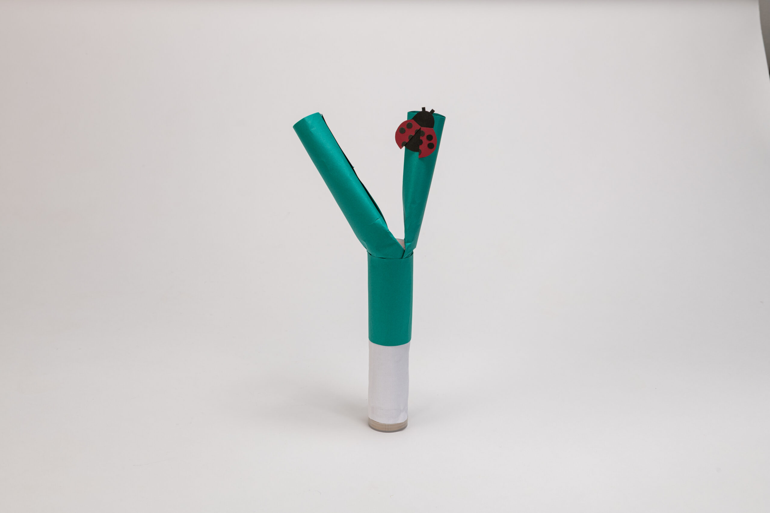 作品名「しょく物」を中学生部門の審査員特別賞としました。外観は、紙の紐でらせん状をつくり、そこにセンニチコウ(千日紅)のようなボンボリ型の赤い花と、いくつも小さな薄い色の花が付いている赤い花の2本の花があります。また、薄い空色の花に同じ大きさくらいの蝶がとまっている花が配置されています。さらに、小さな6つの花弁の青い花や大きな3つの花弁の花なども咲いています。さらに、グリーン色のビー玉や紺色のガラス感のあるタイルも装飾されています。
