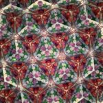 万華鏡システムは、ドライタイプのチェンバースコープと思われます。覗いてみると、とても美しい「辺」を感じさせる光イメージが展開されます。線的な緑色と薄いピンク色が合成されてつくりだす光イメージは、目に飛び込んでくる素晴らしいシーンを構成しています。
